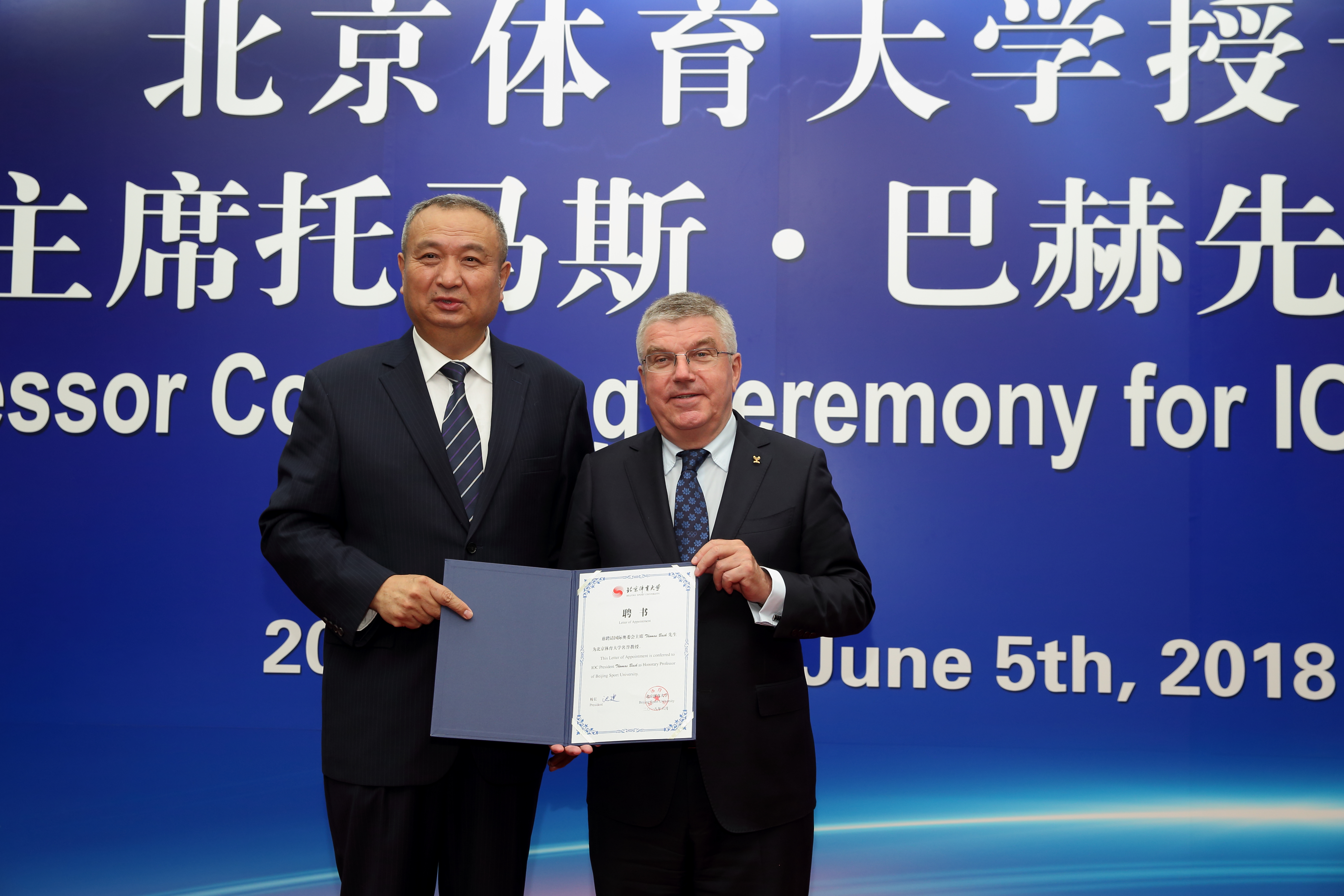 game365打不开党委副书记、校长池建为托马斯·巴赫颁发聘书