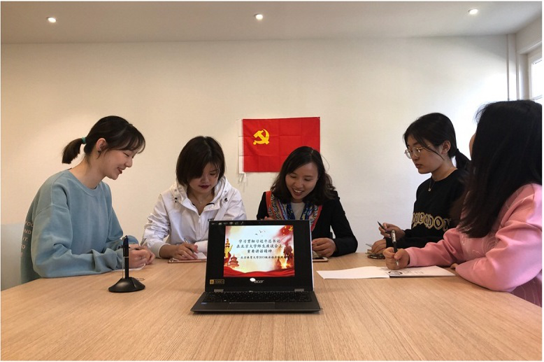 北体学子牢记“爱国、励志、求真、力行”嘱托和期望,继续深入开展“不忘初心,牢记使命,做有理想、有本领、有担当的时代新人”主题教育实践活动,将习近平总书记重要讲话精神融入日常学习训练生活、融入课堂学习表现,切实提高自身素质能力,争做时代新人。在学习习近平总书记系列重要讲话活动中,学生对照检查、分享感悟、共同提升,并利用视频连线的方式,保证国内国外学生同步学习,共同提高。