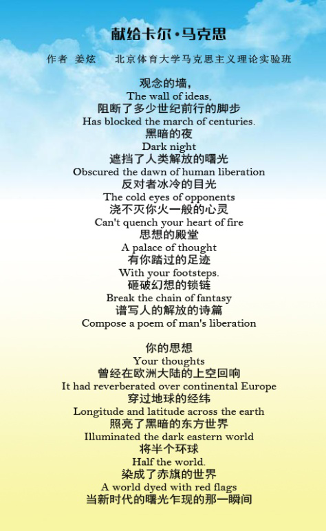 马克思主义学院学生创作的诗词《献给卡尔•马克思》