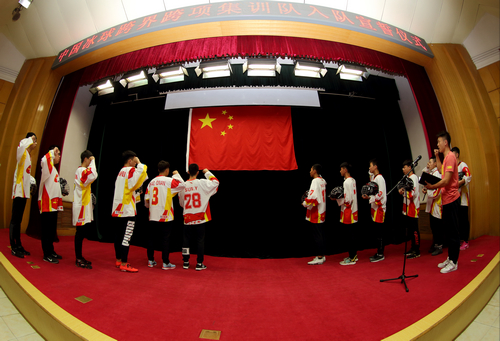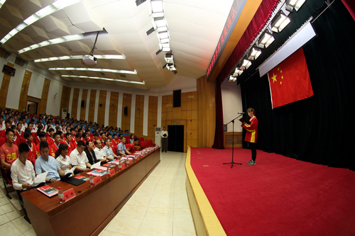 仪式在雄壮的国歌声中开始,全体运动员、教练面对国旗庄严宣誓。教练员王晓亮和运动员郭露阳作为代表进行了发言。教练员熊铮、运动员黄迎领学了《国家队教练员行为规范》、《国家队运动员行为规范》。